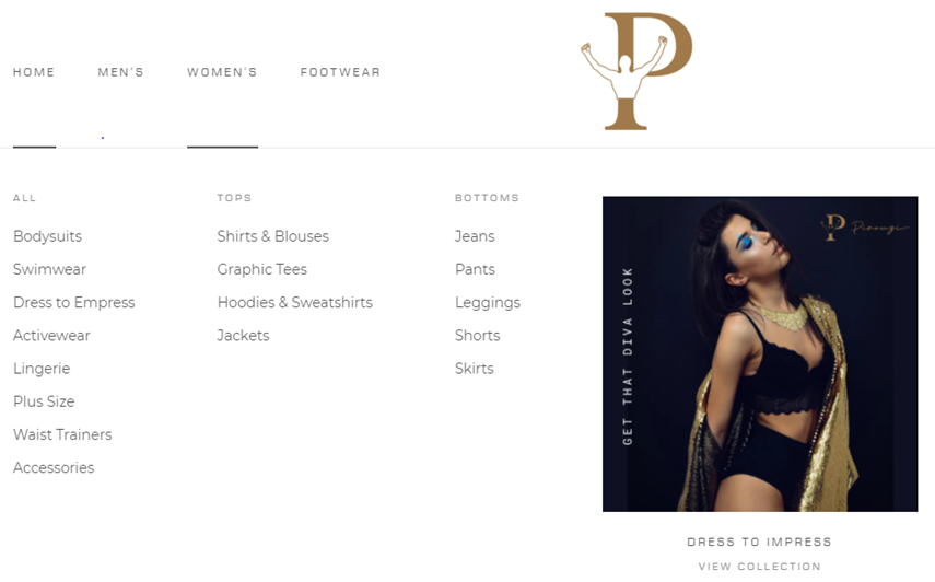 The homepage design of the fashion brand Pirouzi Official is worth referencing: The menu lists categories such as “Men’s”, “Women’s”, and “Footwear”. When you hover the mouse over each category, you can see the subcategories as shown in the picture below, allowing users to switch pages freely without relying on the “Back” button, which greatly improves navigation efficiency.